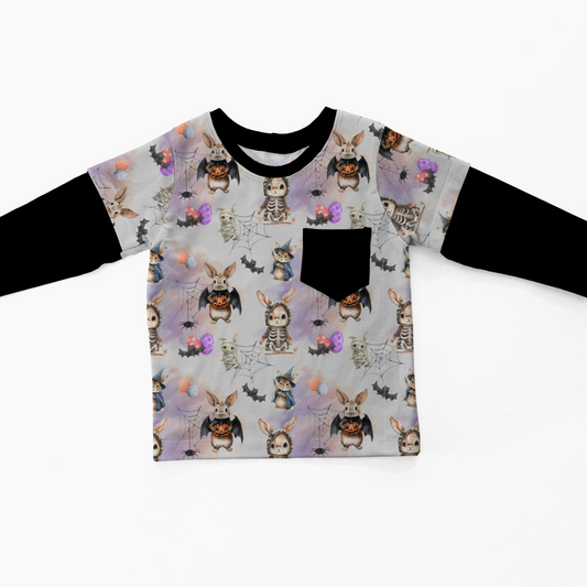 Layered T-shirt - Bunnies, Bones and Bloom - Haunting Hares